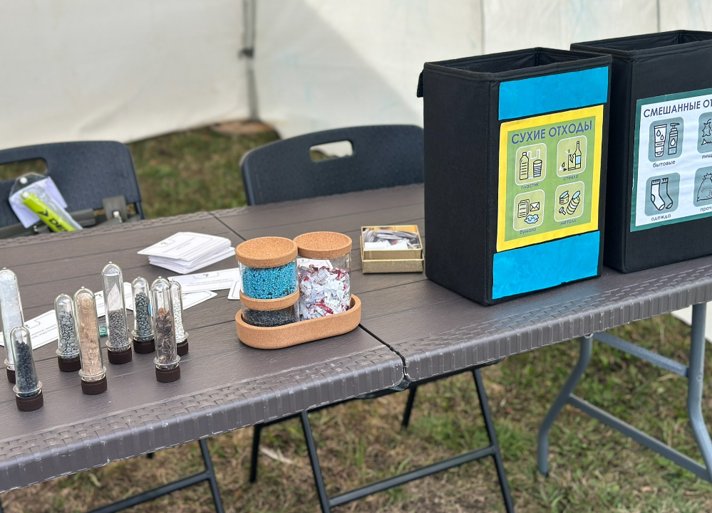 Гости познакомились с осознанным потреблением, раздельным сбором, переработкой отходов, а также потренировались в сортировке пластиковых крышечек.