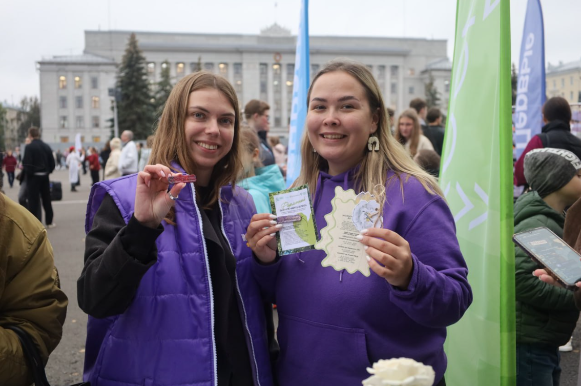 Эковолонтеры показывали, как обычные пластиковые крышечки превращаются в стильные фирменные значки «Я разделяю». На площадке царила атмосфера азарта и веселья – мы с удовольствием показывали, что вторичное сырьё может быть не только полезным, но и креативным.