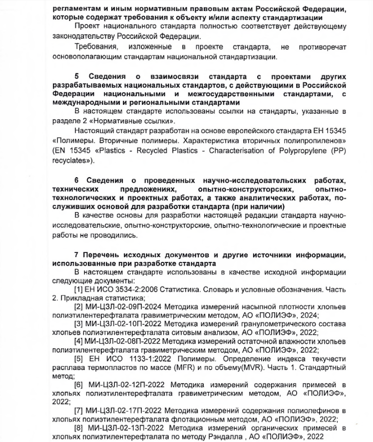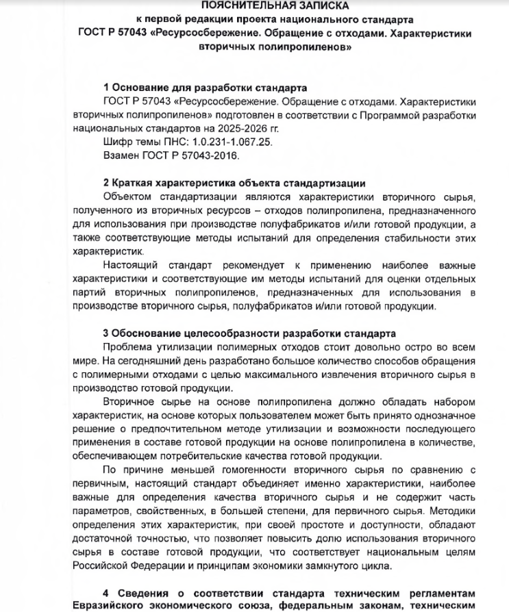 Проект первой редакции ГОСТ Р «Ресурсосбережение. Обращение с отходами. Характеристики вторичных полипропиленов» (шифр темы ПНС: 1.0.231-1.067.25)